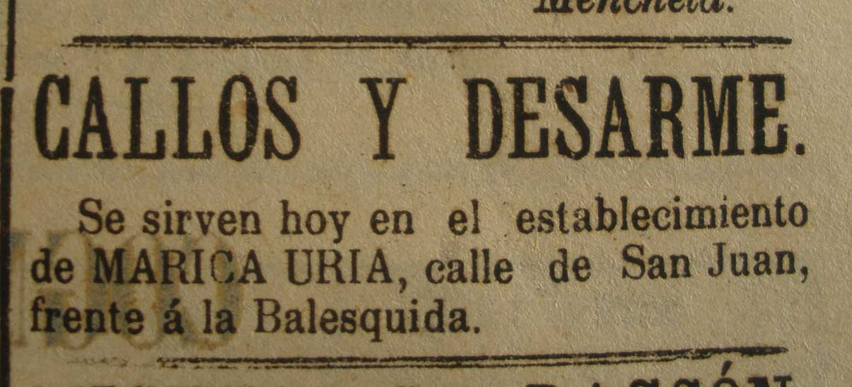 Primer anuncio de un local publicitando el Desarme. 19 de octubre de 1897 (El Correo de Asturias)